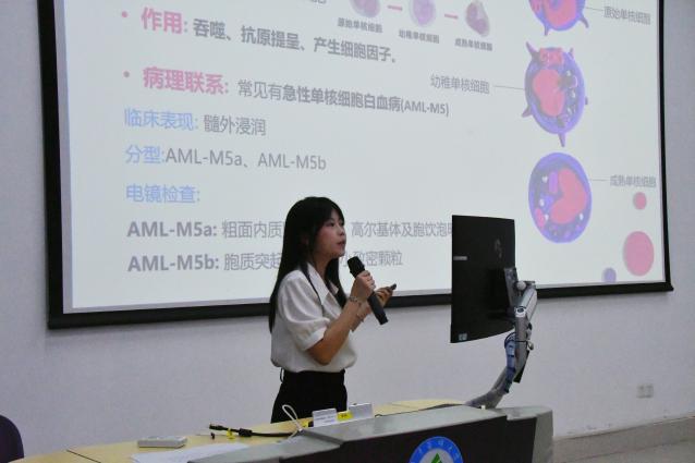 各组选手结合PPT对自己的模型进行了生动的汇报解说。他们用精炼的语言阐述了细胞各组成部分的结构特点,揭示了细胞本身发挥的作用,还探讨了细胞在疾病诊断的意义。