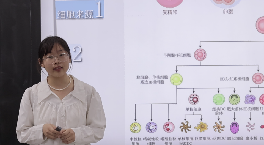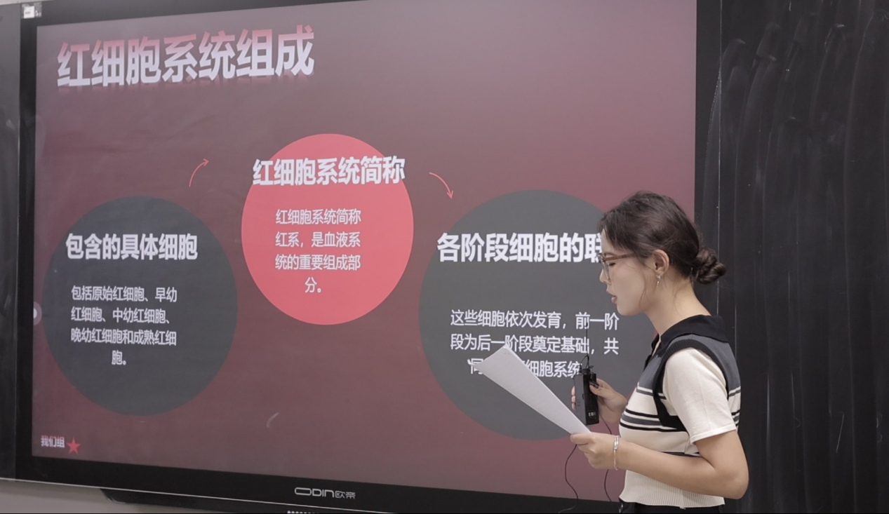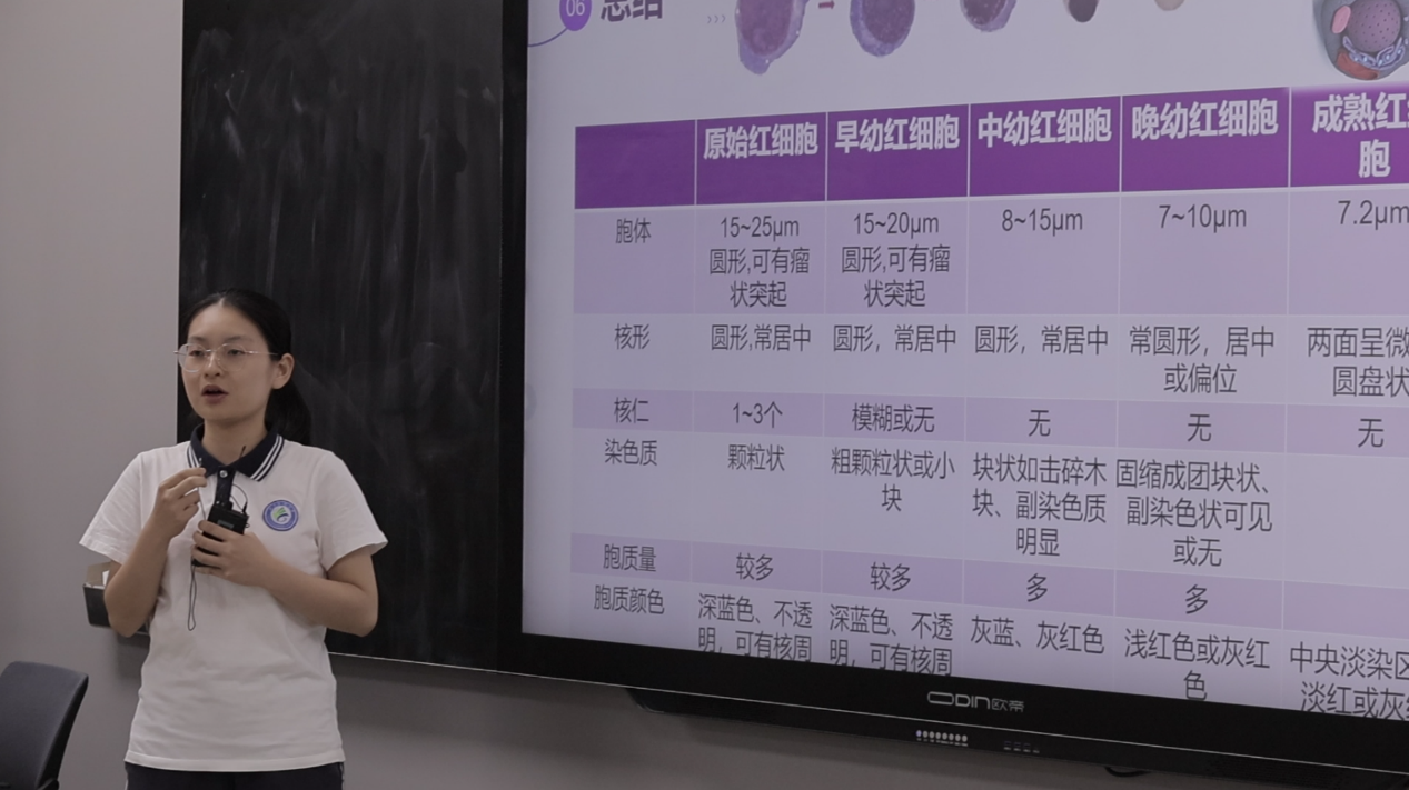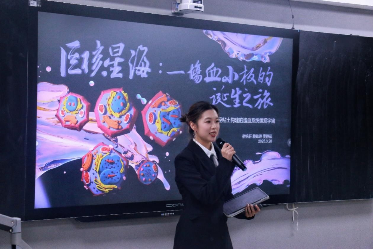 八支参赛团队围绕血液系统核心主题展开角逐,通过粒细胞系统、红细胞系统、淋巴细胞系统、巨核细胞系统、单核细胞系统等模型的动态演绎,系统解析细胞发育阶段中胞体结构、核仁、染色质等细胞结构变化及功能特性。值得一提的是,部分团队创新引入互动体验环节,不但鼓励在场的同学们主动回答,并且邀请评委参与模型组装制作过程,生动阐释血小板生成机制,将现场氛围推向高潮。