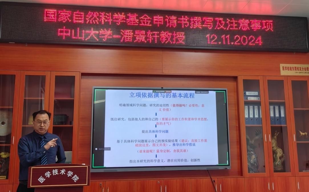 2024年11月12日,中山大学潘景轩教授应邀来英国上市公司365英国上市公司365开展题为《国家自然科学基金标书撰写及注意事项》的学术讲座。会议由英国上市公司365院长张华主持,英国上市公司365党委书记阮杰以及英国上市公司365、公共卫生学院、药学院等部份师生代表参加了本次讲座及交流座谈会。
