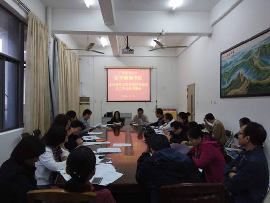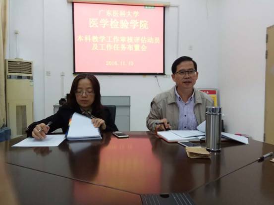 1110日下午4时医学检验学院在学院会议室召开本科教学工作审核评估动员暨工作任务布置会,会议由医学检验学院党委书记宁静主持,学院全体教职员工参加会议。