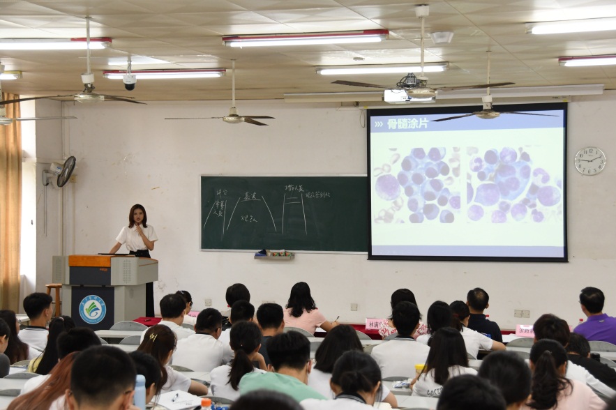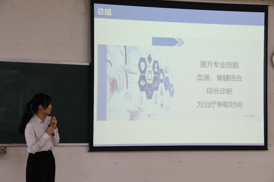 细胞形态学检验方向特色班的各参赛小组准备充分,结合生动形象的动画片、故事、病人检验报告单、细胞形态图片等素材,有条不紊地向我们展示有趣血液病案例。《牙龈闹情绪?警惕白细胞!》让大家发现小小的牙龈出血也可能是让人闻而生畏的白血病所导致,同学们体会到作为检验工作者需要认真细致,大家要不断提升专业技能,血液骨髓检查结合进行综合诊断,为患者治疗争取宝贵时间。《祸从口入:零食不能随便吃》让大家知道了蚕豆可以诱发溶血性贫血,懂得了溶血性贫血相关的实验室检查,了解到蚕豆病在日常生活中的禁忌和注意事项。各组病例构思巧妙,各具特色,有的带领观众置身侦查现场,从细胞形态寻找蛛丝马迹,探明疾病。有的从遥远的英国王室后代出血说起,讲述“尊贵”的血友病。
