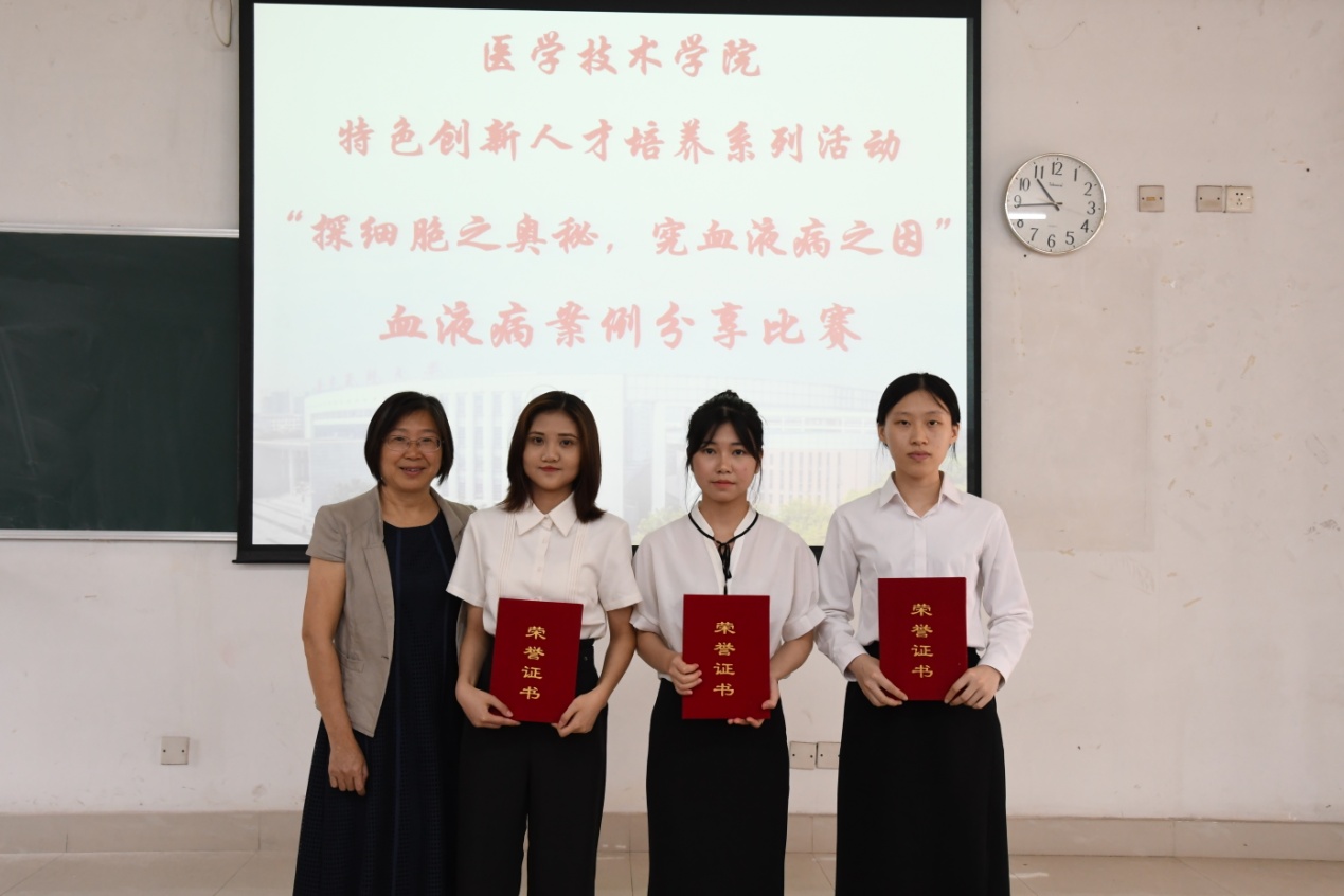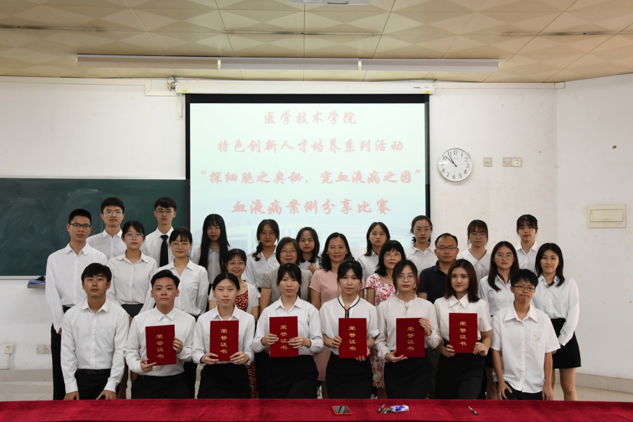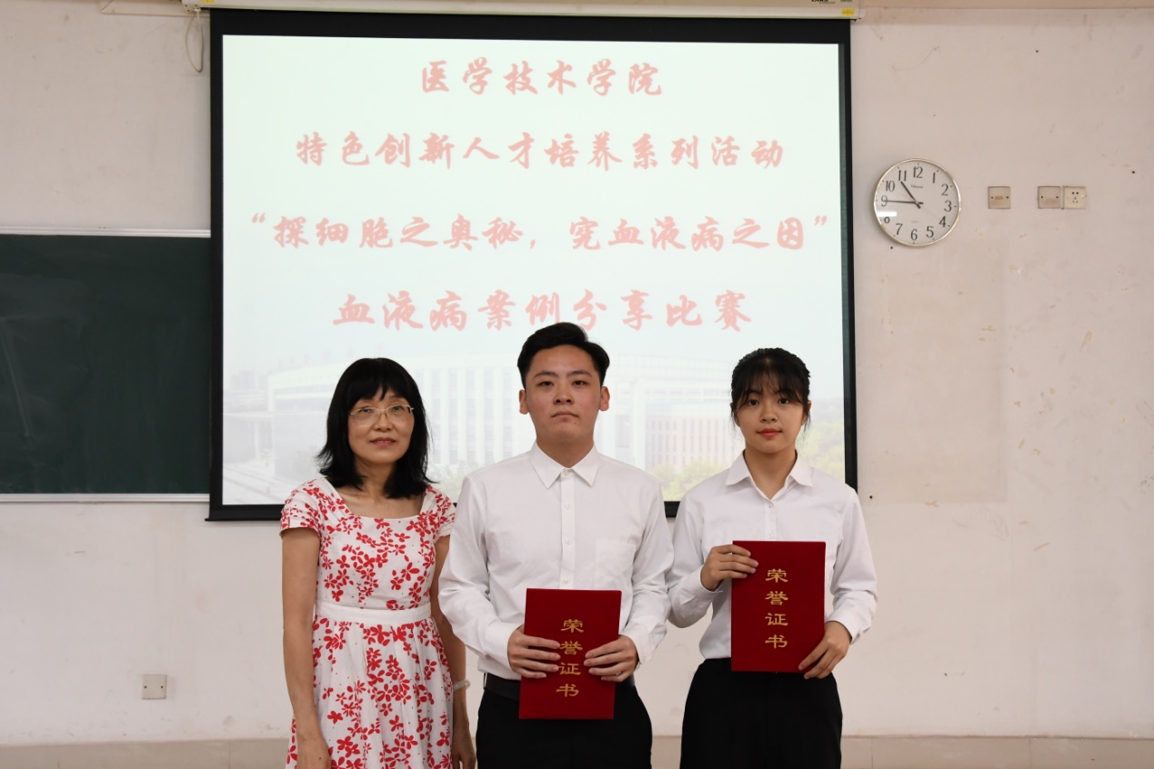 在经过一场精彩角逐之后,最后获得一等奖的是第四组《牙龈闹情绪,警惕白血病》,二等奖是第三组《谜案风云——善变的M3》、第五组《异淋与急疹的美丽邂逅》,三等奖是第六组《尊贵的“皇室病”》、第一组《MM与真假CNL的爱恨情仇》、第二组《祸从口入:零食不能随便吃》。评委老师为获奖选手颁奖并合影留念。
