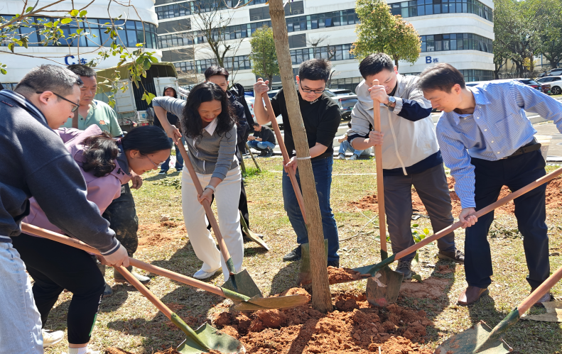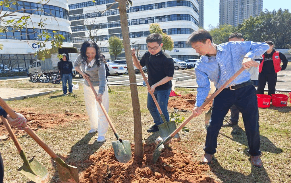 阳光和煦清风拂面学院老师和同学们满怀热情分工明确在科技大楼斜坡处、交流中心旁有序开展植树活动。在一搬、一放、一铲、填、一浇中,新种植的黄花风铃木和樟树在湖畔摇曳生姿、在道路两旁昂首屹立,为广东校园再添盎然绿意。
